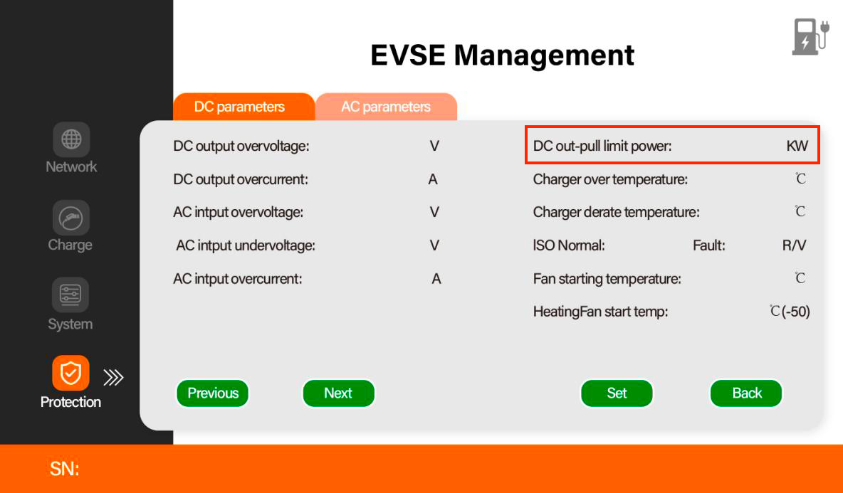 - Max Output Power (e.g., 240 kW) – Limit for maximum charging output power.